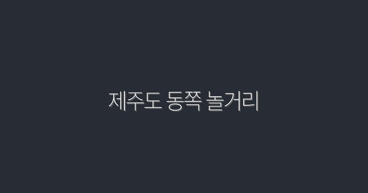 제주도 동쪽 놀거리 10곳 추천! 2026년 최신 꿀팁
