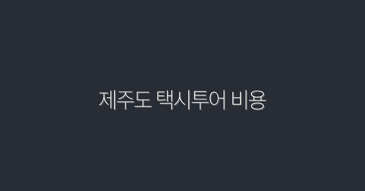 2026년 제주도 택시투어 비용